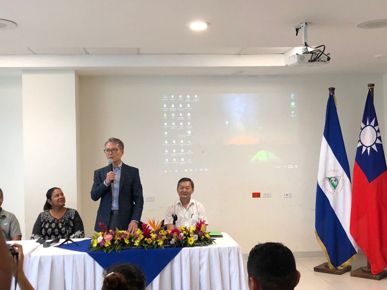 El embajador de Taiwan en Nicaragua y la codirectora del Instituto Nicaragüense de Tecnología Agropecuaria (INTA) presidieron la inauguración del Foro sobre Alternativas para la Producción de Semilla de Arroz en Condiciones de Sequía.