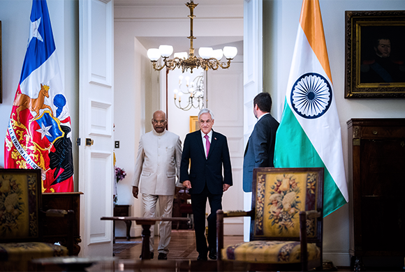 El presidente de la India, Ram Nath Kovind se reunió con el presidente de Chile, Sebastián Piñera y ambos coincidieron en la necesidad de profundizar sus relaciones políticas y comerciales y en promover nuevos temas en la agenda de cooperación que estrechen las relaciones entre ambos países. Al mismo tiempo, destacaron la importancia de la ampliación del acuerdo preferencial bilateral que entrara en vigor en mayo de 2017 como una herramienta para incentivar el comercio bilateral.