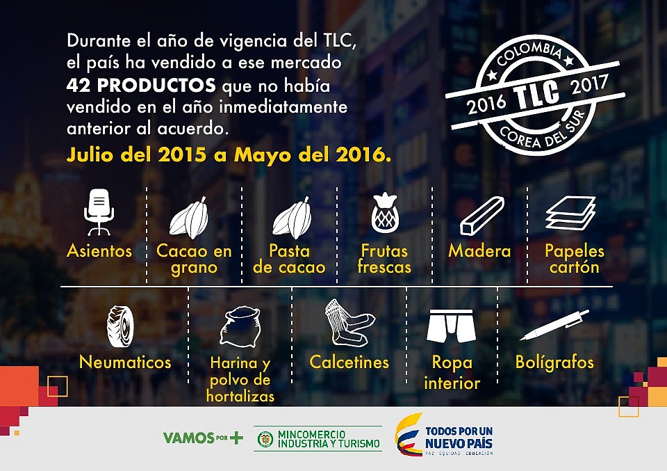 32,5% aumentan exportaciones no mineras de Colombia a Corea en 1er año de TLC: MinComercio