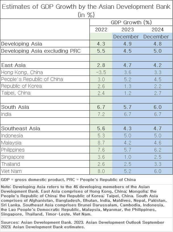 Estimates by the Asian Development Bank suggest that in 2024, emerging economies in Asia will grow by 4.9% compared to 2023, led by increased economic activity in India (6.7%). Meanwhile, China’s economy is projected to increase its production level by 4.5% in 2024, while Southeast Asian economies are expected to grow by 4.7%. Furthermore, the Republic of Korea and Singapore will grow by 2.2% and 2.5% respectively.