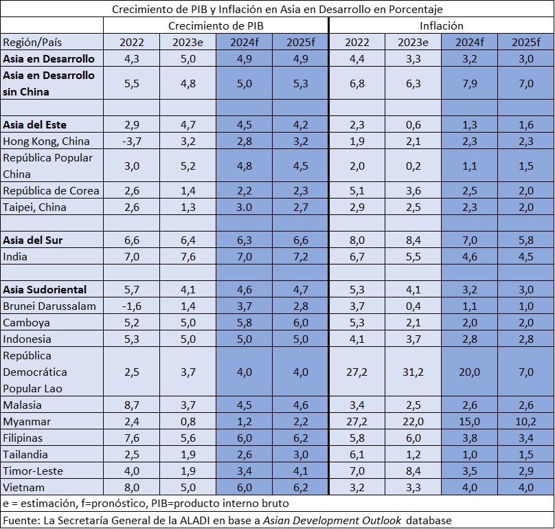 El Banco Asiático de Desarrollo (BAD) publicó las proyecciones económicas de Asia en desarrollo y el Pacífico el mes pasado, estimando que las economías de la región crecerán 4,9% este año y el próximo año. La inflación continuará desacelerándose 3,0% el próximo año.