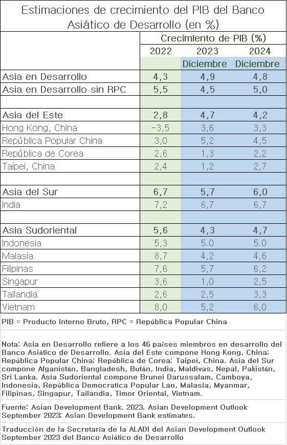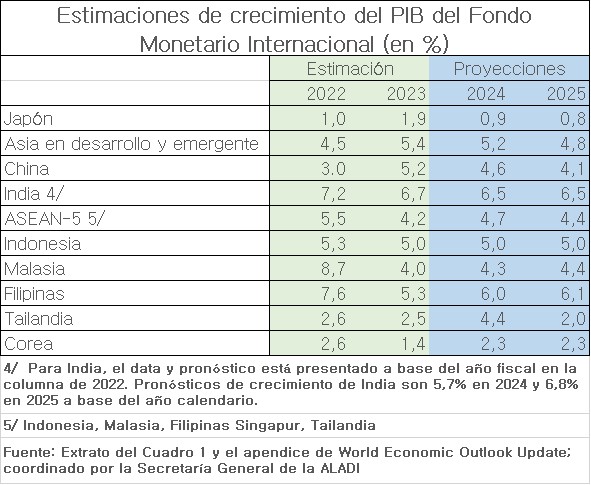Fuente: La Secretaría General de la ALADI en base al Banco Asiático de Desarrollo y al Fondo Monetario International