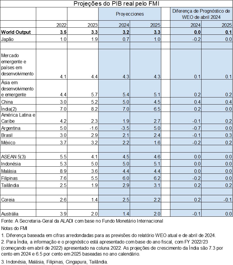 Na sua revisão de julho, o Fundo Monetário Internacional não modificou a taxa de crescimento da economia mundial para 2024, que igual que em abril a situa em 3,2%, no entanto, a média mundial ocultam mudanças nas estimações por áreas geográficas.