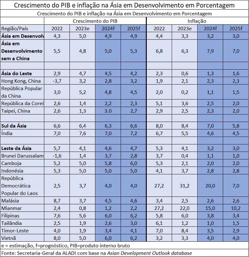 Fuente: Secretaria-Geral da ALADI com base no Banco Asiático de Desenvolvimento